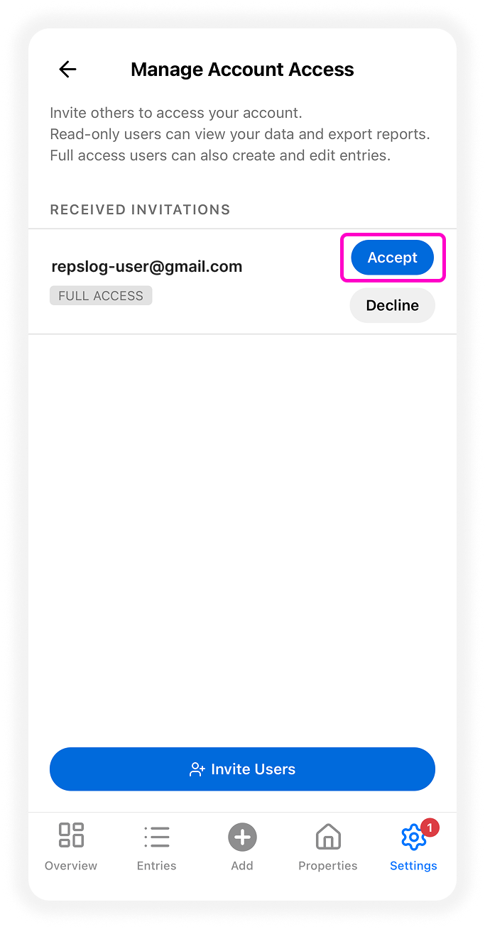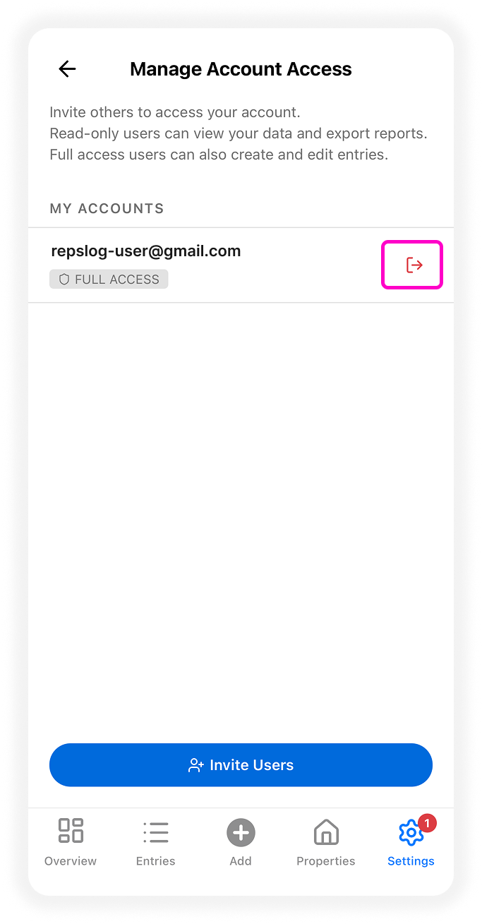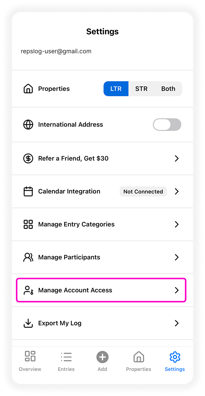 Manage User Access lets you securely share your REPSLog account with others — without sharing your password.